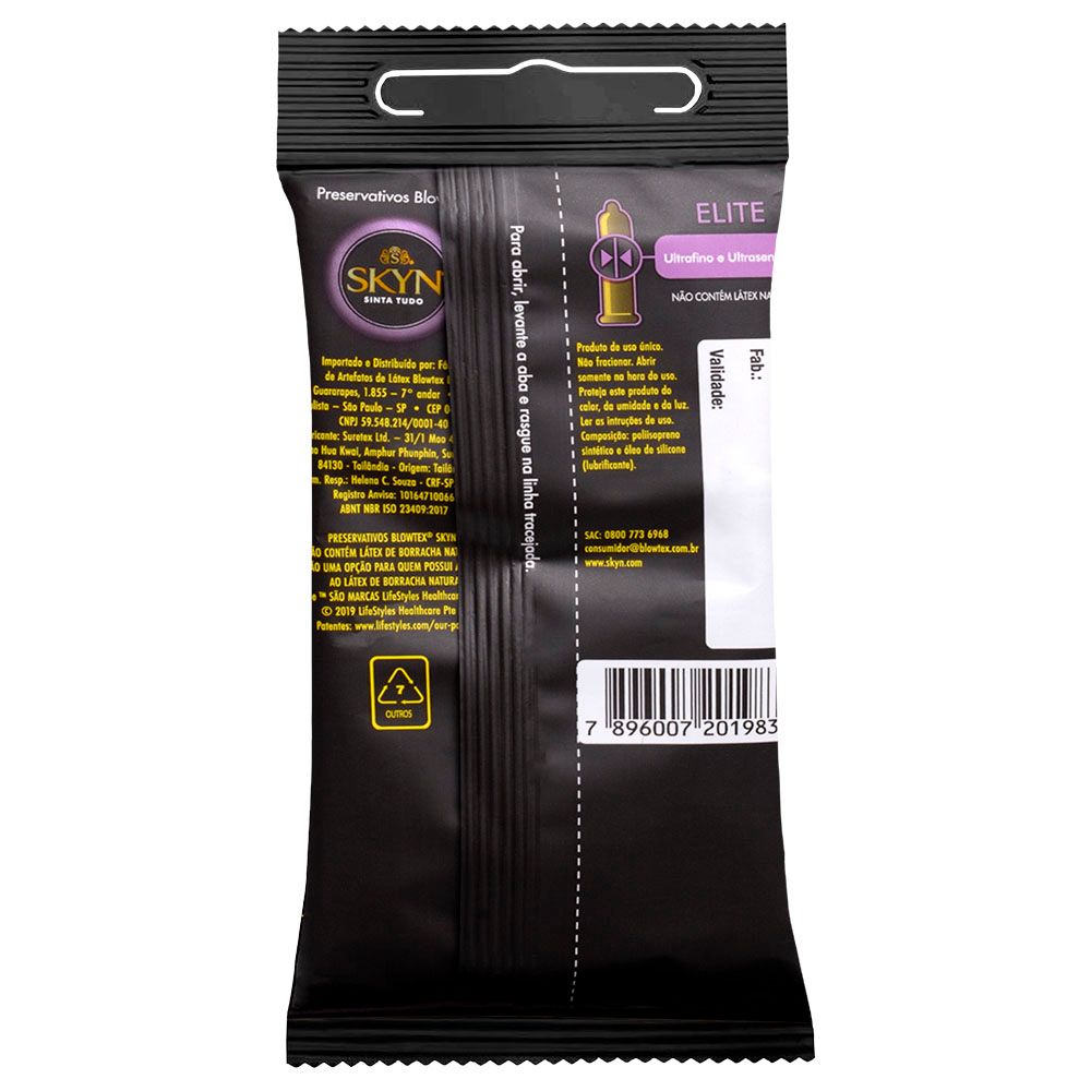 Preservativo Blowtex Skyn Elite 6 Unidades – Ultrafino, Sem Látex e Ultrasensitive