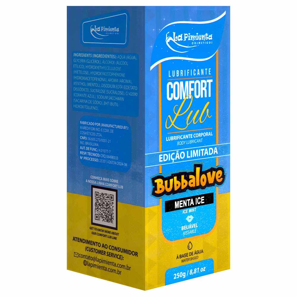 O Lubrificante Comfort Lub Bubbalove 250g da La Pimienta combina estímulo sensorial, alta performance e um sabor irresistível. Perfeito para quem deseja explorar novas formas de conexão íntima, com conforto e diversão. Garanta já o seu e deixe o prazer escorregar sem limites!