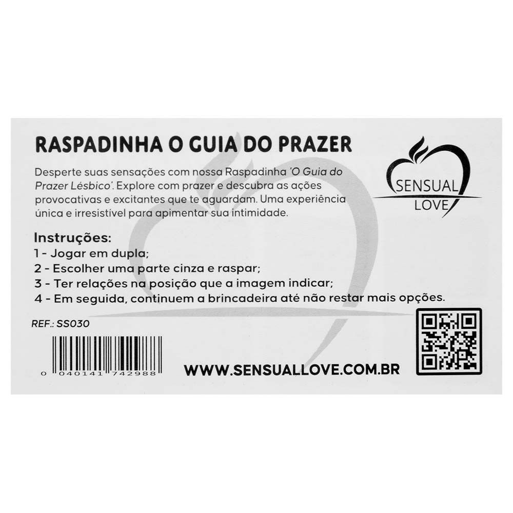 Com a Raspadinha Guia do Prazer Lésbica da Sensual Love, suas noites ganham um toque especial de criatividade, intimidade e sensualidade. Experimente essa proposta provocante e viva momentos inesquecíveis com quem você ama.