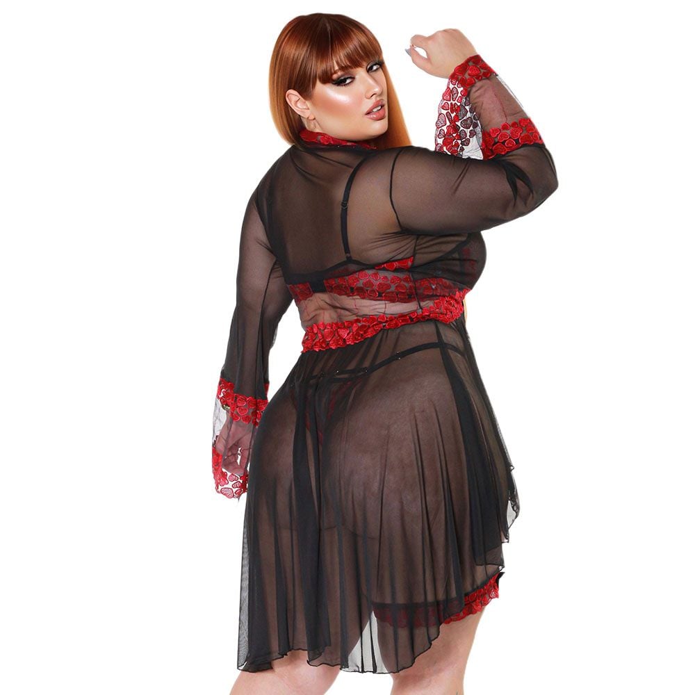 O Robe Plus Size Chamas do Prazer da Tallyta Moda Apimentada é a união perfeita entre elegância e sensualidade. Confeccionado em tule bordado de alta qualidade, este robe sensual plus size envolve o corpo com transparência envolvente e toque delicado, despertando o desejo com cada movimento. Uma peça feita para mulheres que amam se sentir poderosas, femininas e irresistíveis.