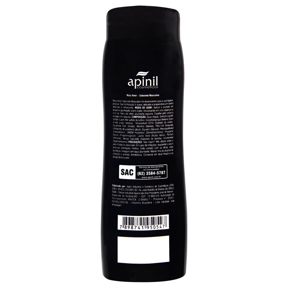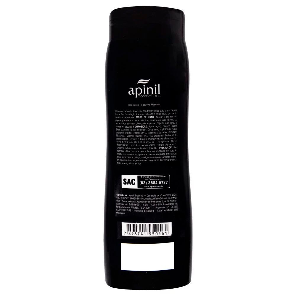 Com o Sabonete Líquido Masculino 200ml Apinil, você transforma seu banho em um momento de revitalização, frescor e elegância. Um cuidado diário que revela a confiança de quem sabe se destacar com personalidade.