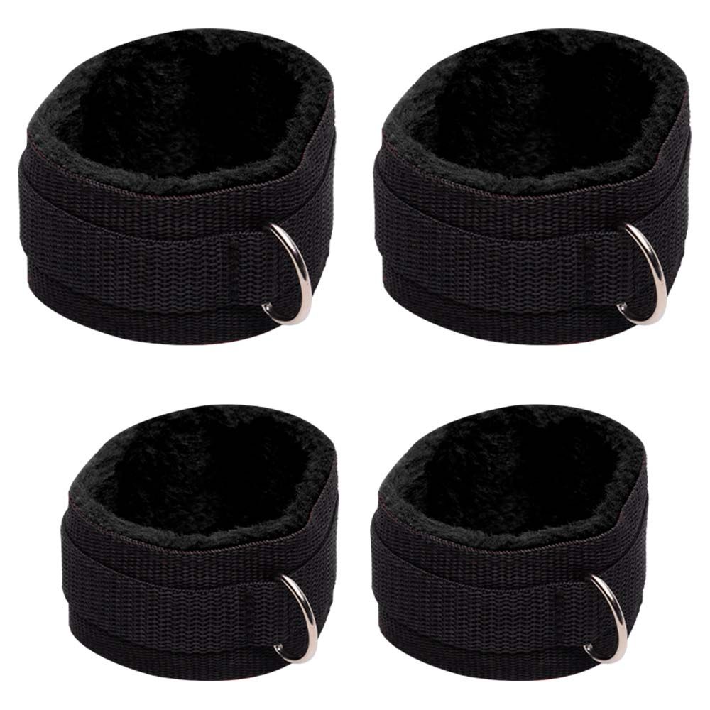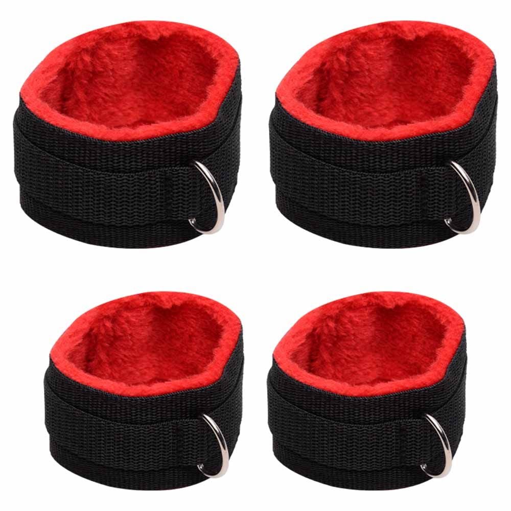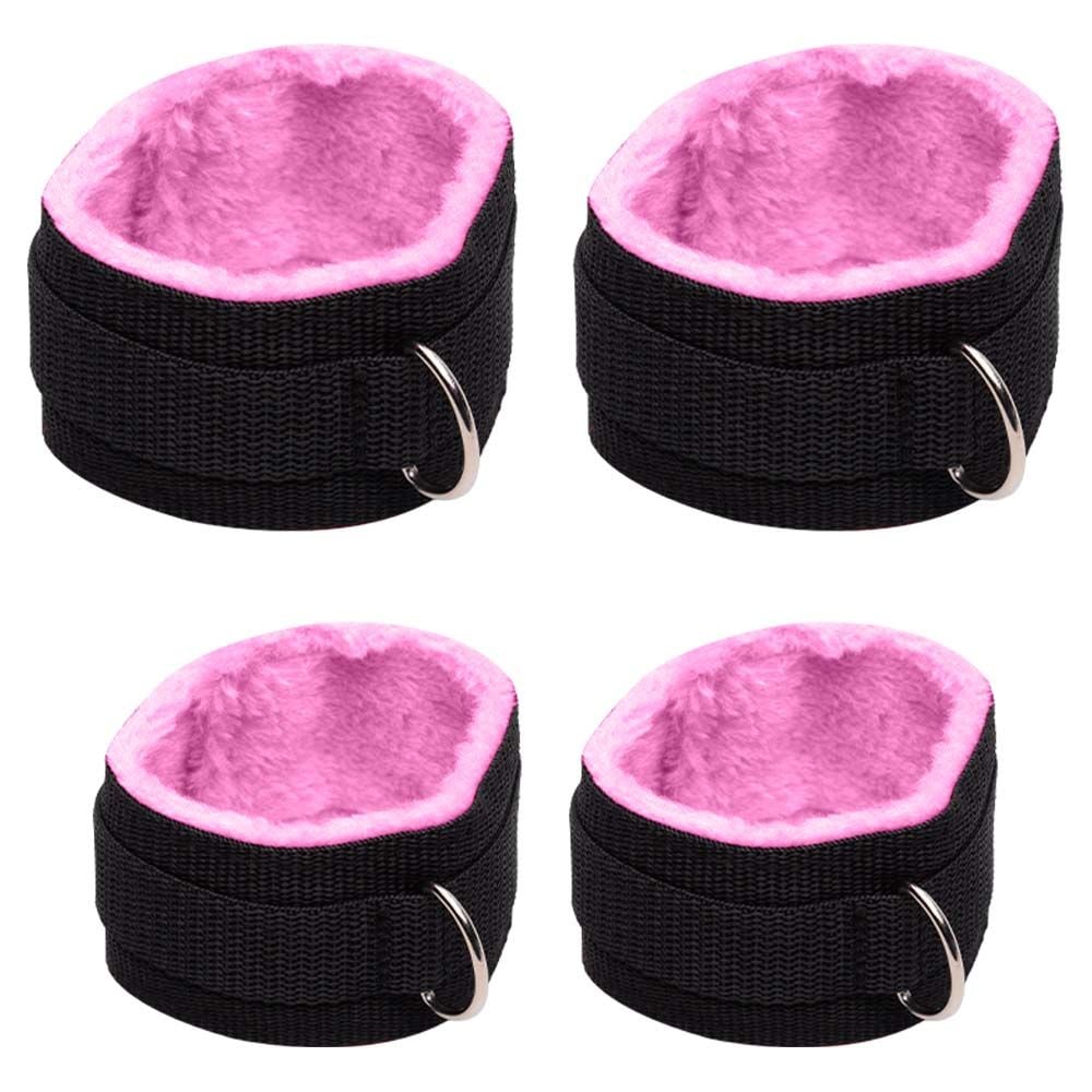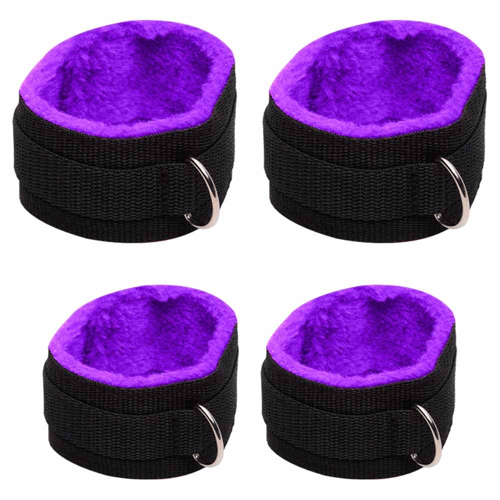 O separador de tornozelo com algemas mantém as pernas afastadas, limitando os movimentos com suavidade e controle. As algemas são confeccionadas em tecido macio com pelúcia, garantindo conforto mesmo em sessões prolongadas. Os fechos ajustáveis proporcionam um encaixe perfeito, adaptando-se a diferentes tamanhos e posições.