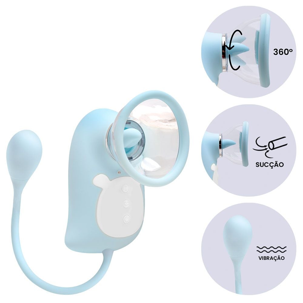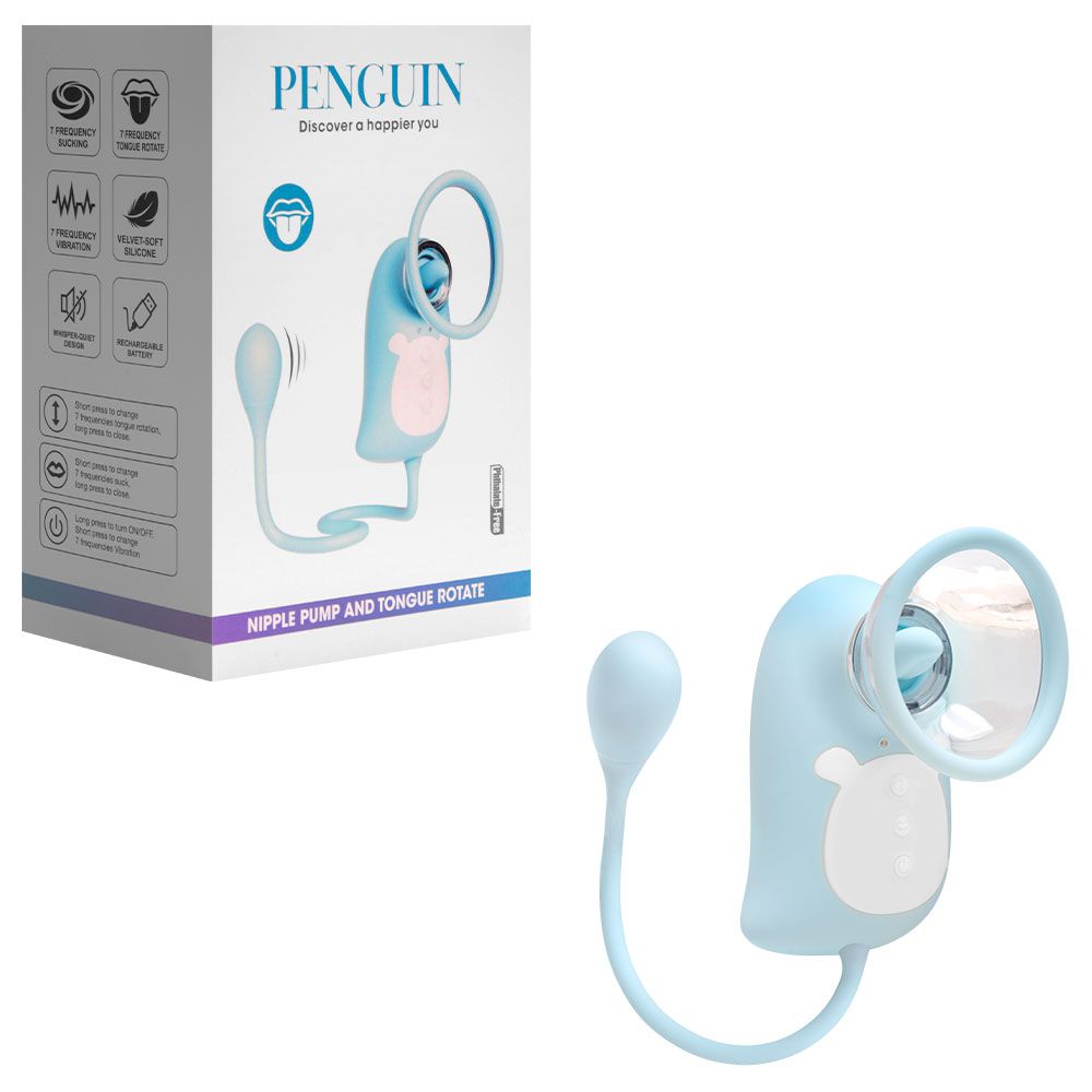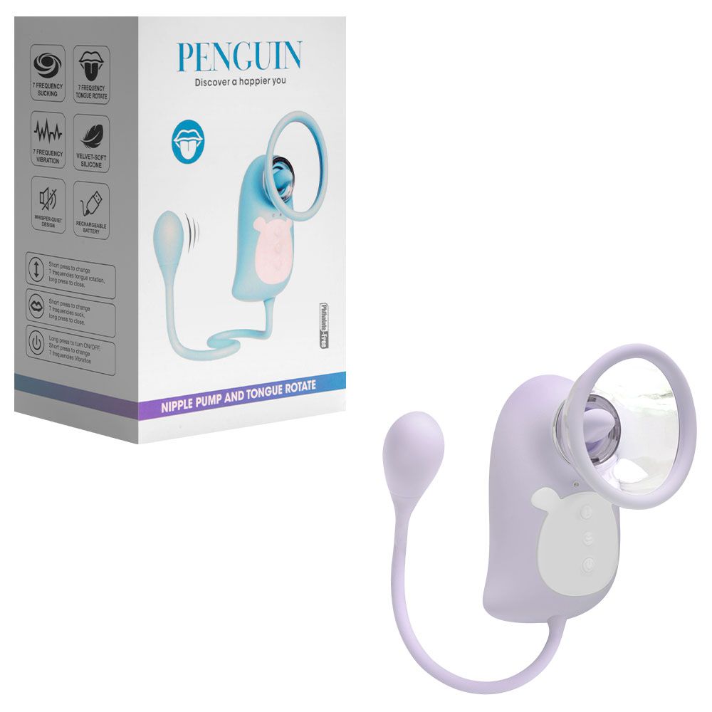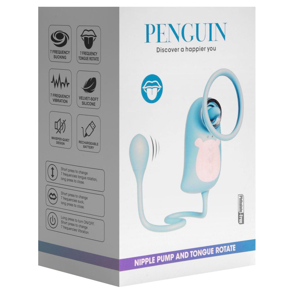 Sugador Clitoriano Penguin com Língua Rotativa e Bullet USB - Vipmix