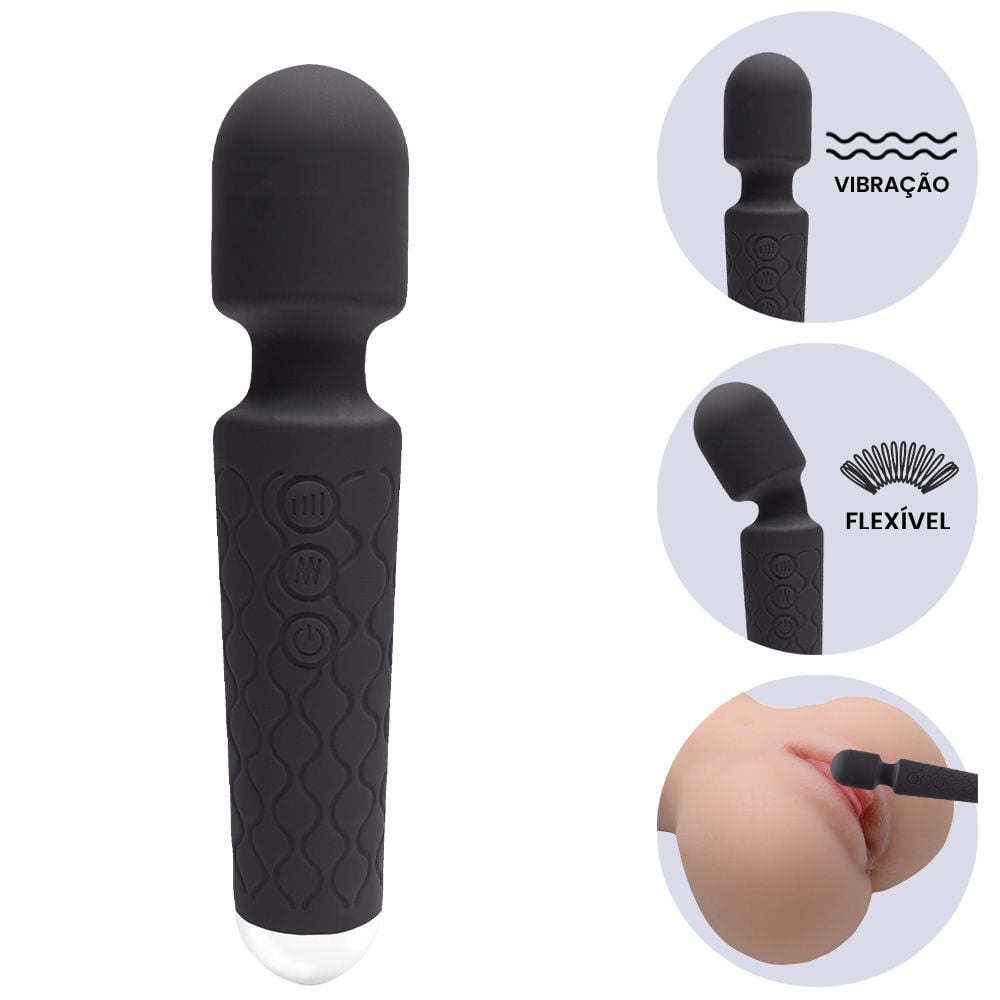 Vibrador Varinha Mágica 2 Vibrações Flexível 15 X 3Cm Vipmix