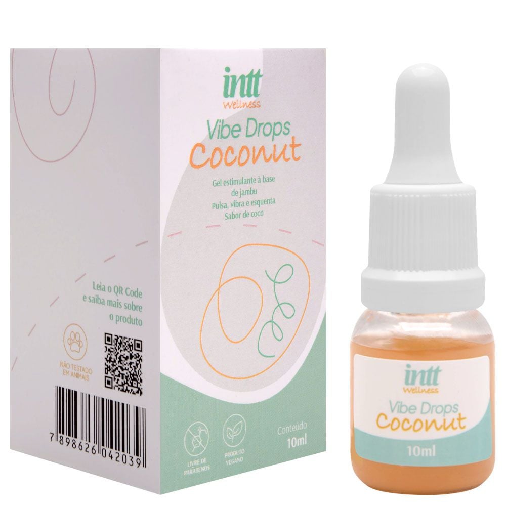 Vibe Drops Gel Funcional Unissex com Efeito Quente e Vibrante – Sabor Coco 10ml – Intt Wellness
