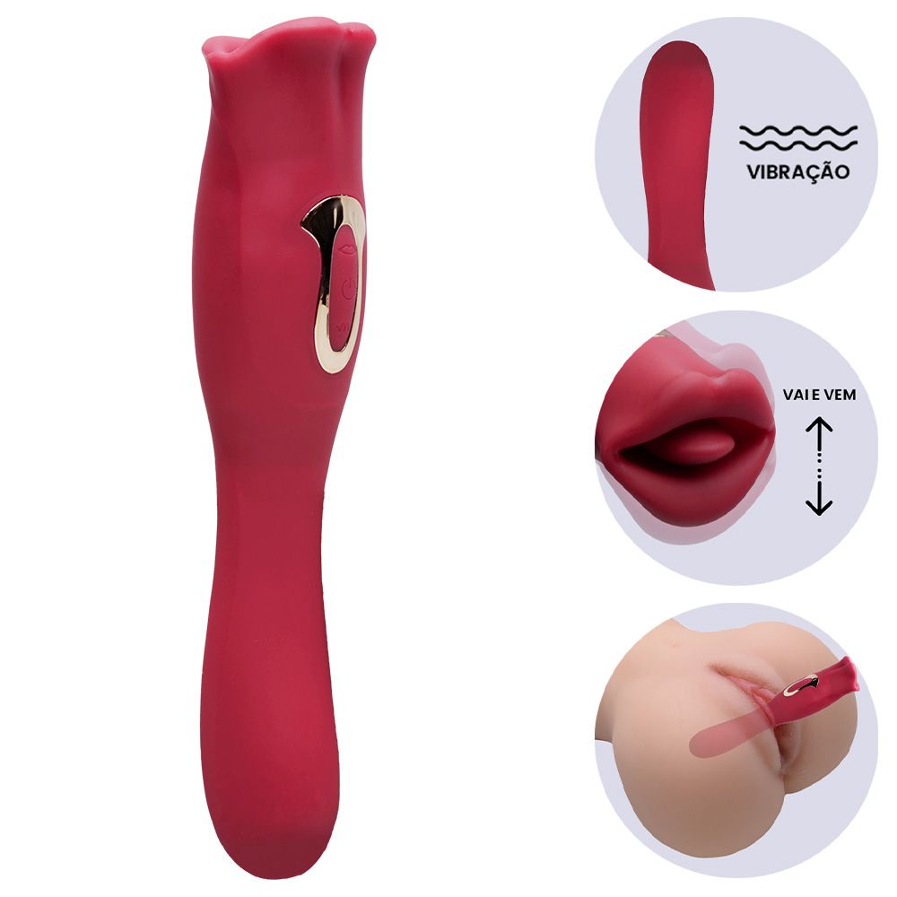 Simulação de Sexo Oral: lábios que se abrem e fecham e uma língua vibratória que se move para reproduzir sensações intensas e realistas.