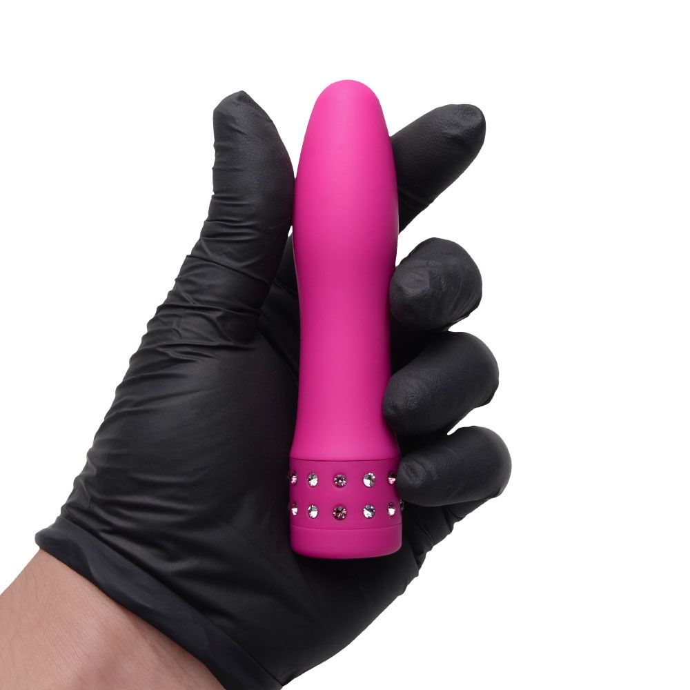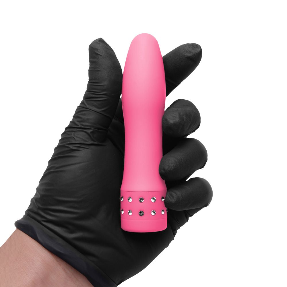 Vibrador Diamond Toque Aveludado 10 X 2,2cm Vipmix. O Vibrador Diamond da Vipmix é um estimulador sofisticado, com um toque aveludado super delicado e detalhes em strass na base, conferindo um toque de elegância. Feito em ABS, é altamente resistente e durável. Seu tamanho compacto o torna discreto e fácil de transportar.