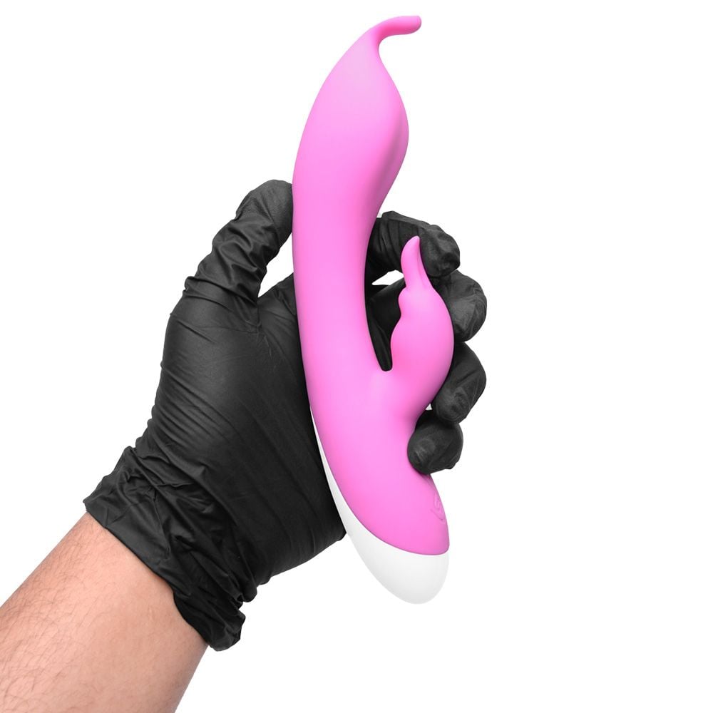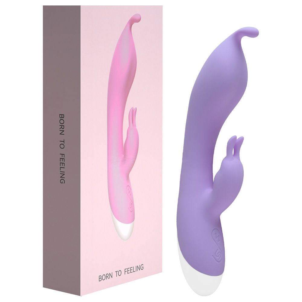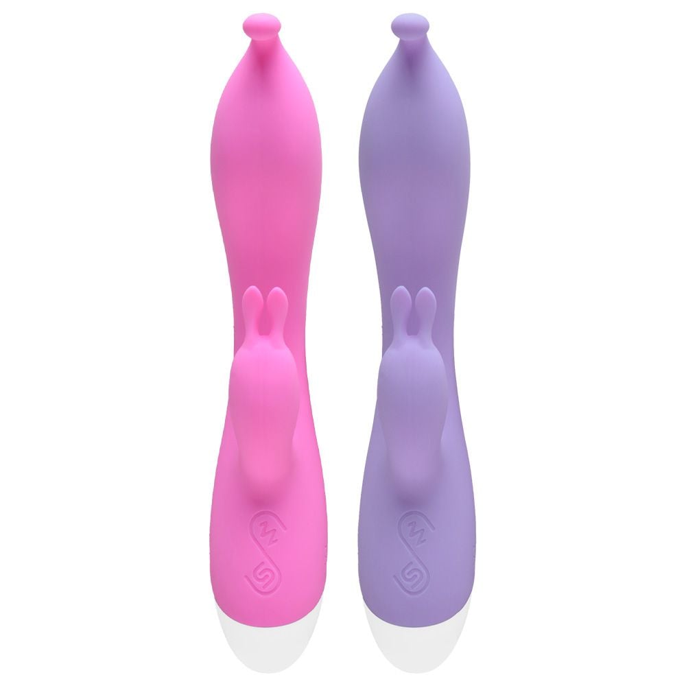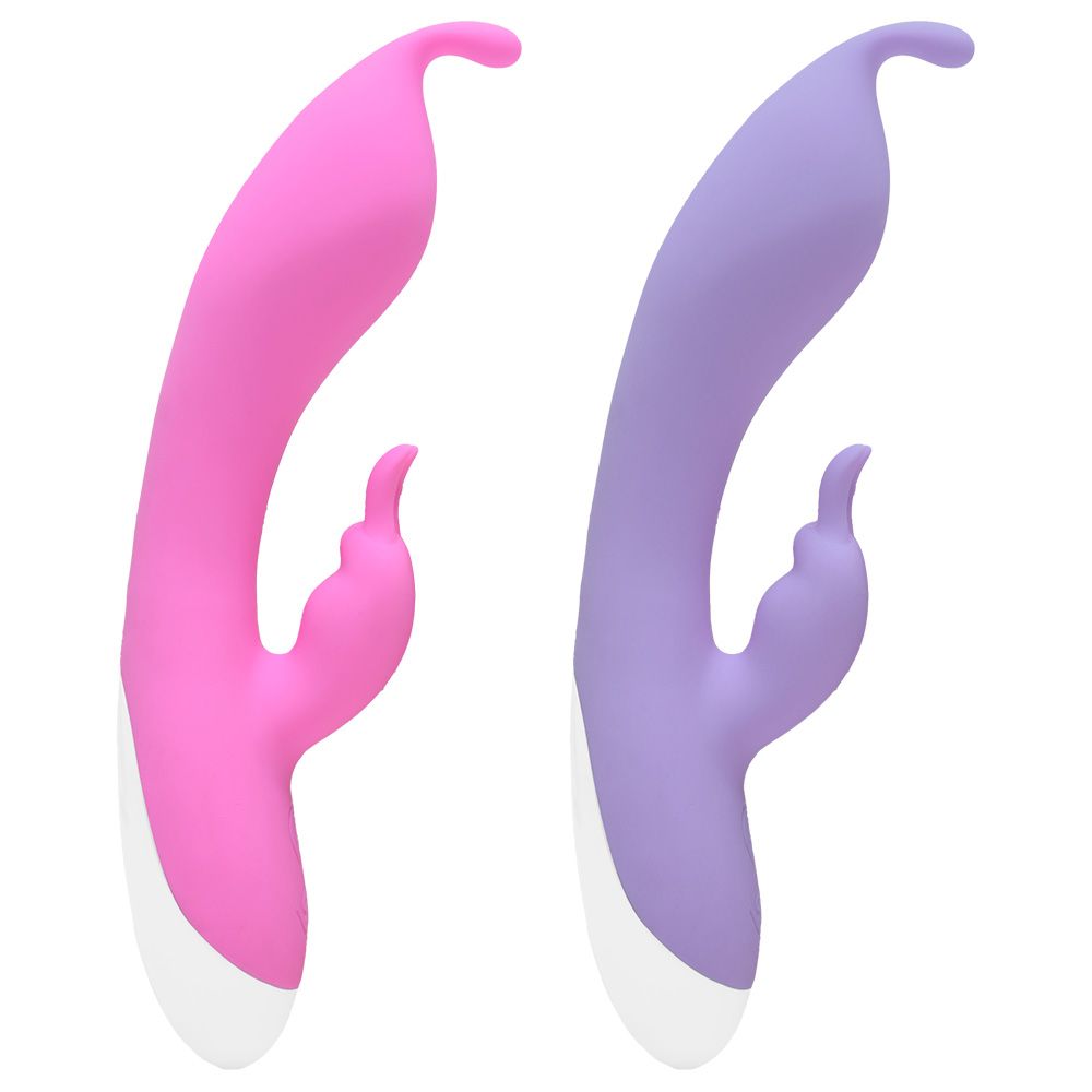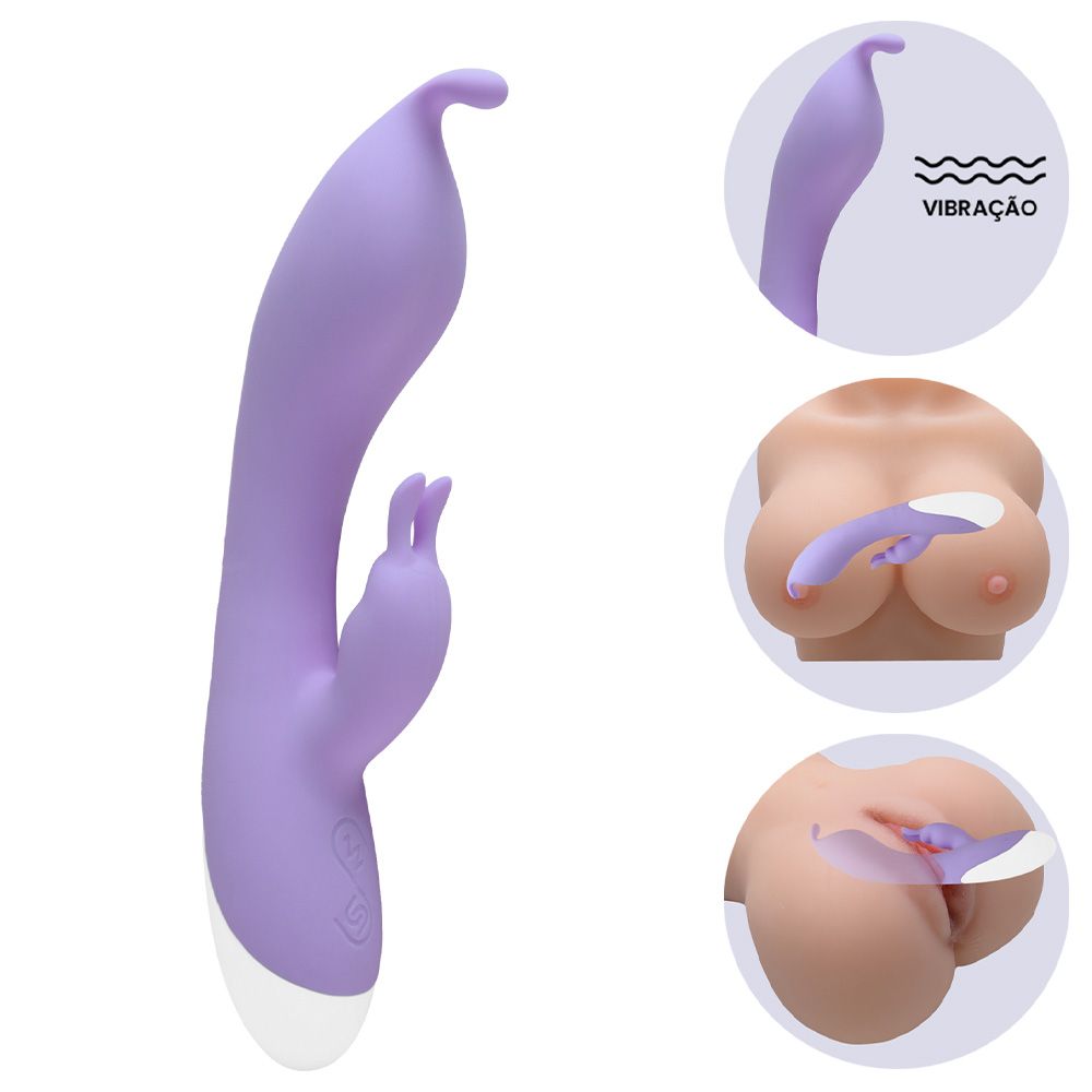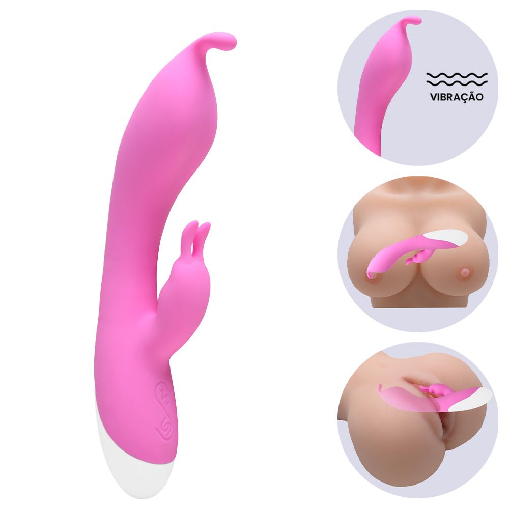 Dupla Estimulação: ponta curvada para alcançar o ponto G e estimulador Rabbit para o clitóris.