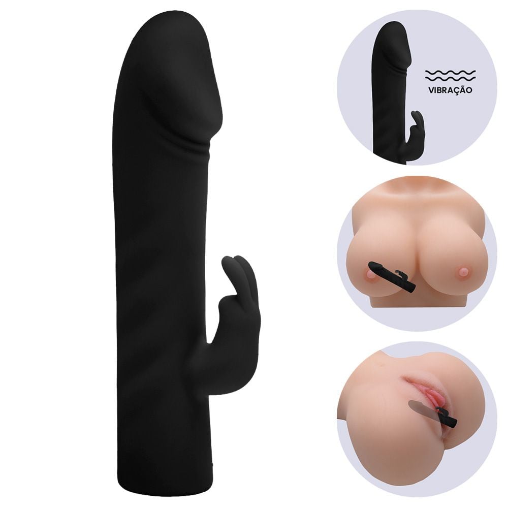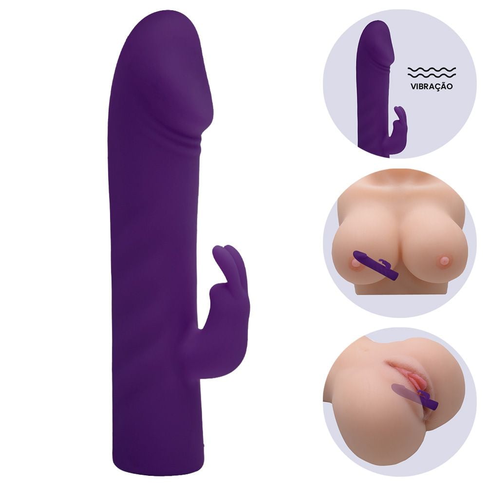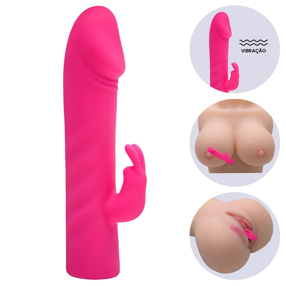 Design Realista e Estimulador Clitoriano: Ponta em formato de glande e estimulador em formato de coelho para prazer duplo.