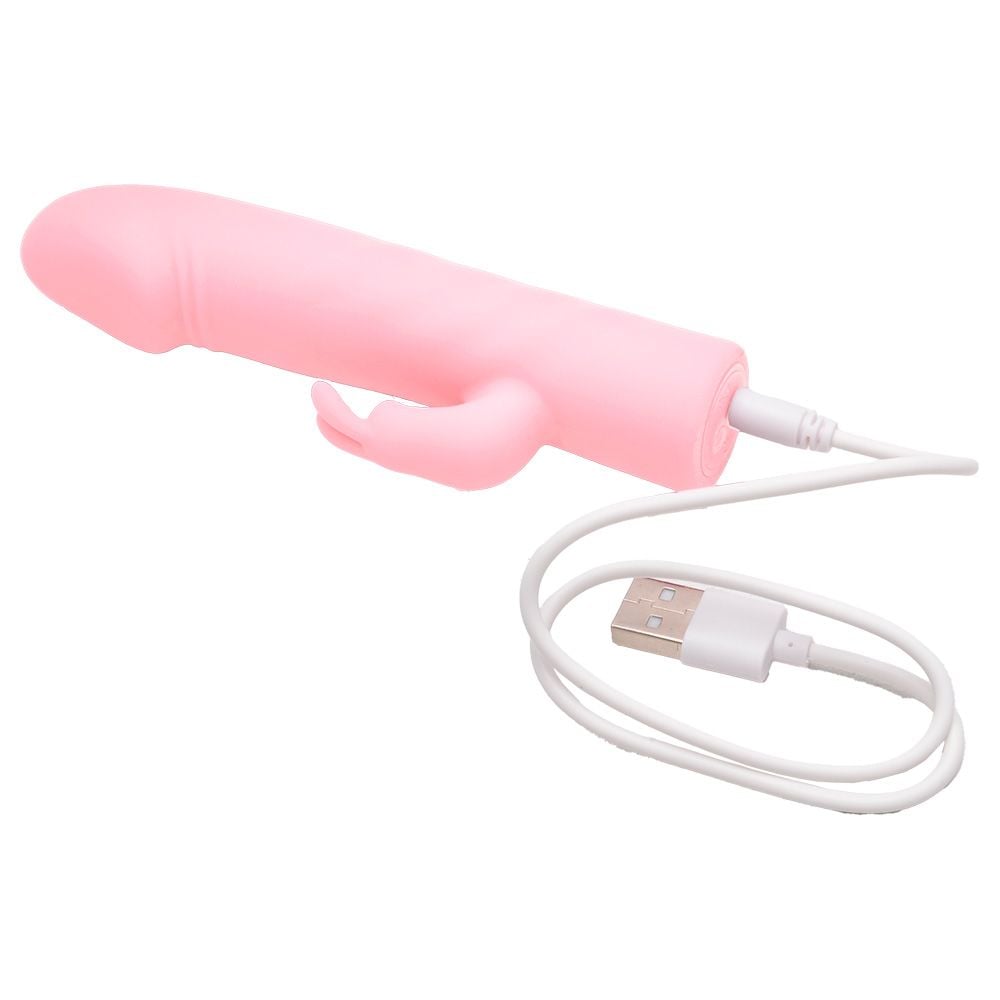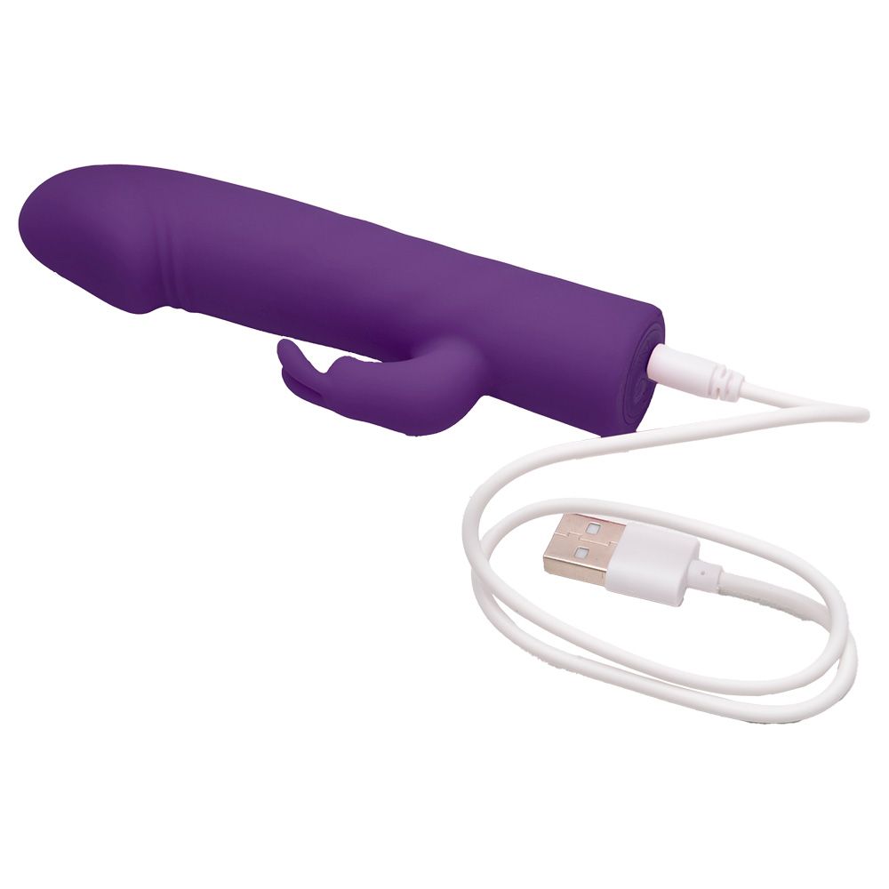 Use o vibrador para estimular o Ponto G com a ponta realista e o clitóris com o estimulador em formato de coelho.