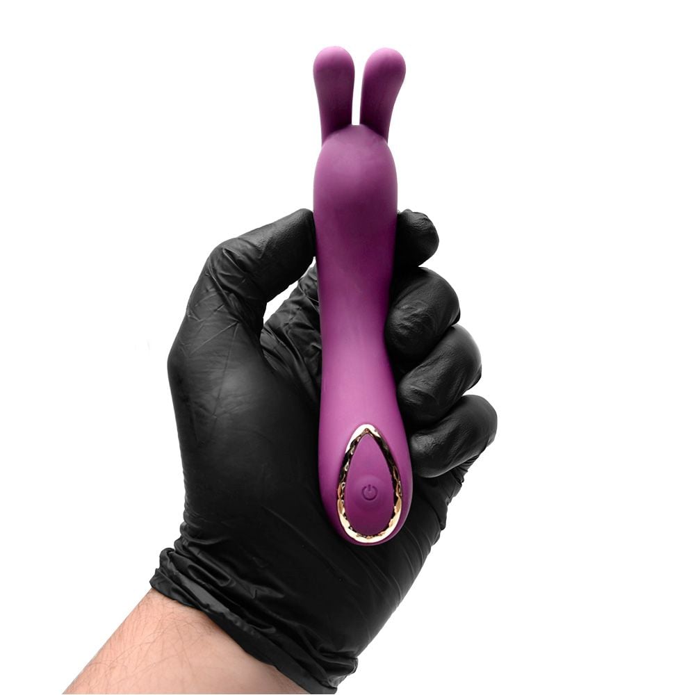 Seu corpo fino e curvado em silicone macio desliza com suavidade, alcançando o ponto G com precisão, enquanto o estimulador em formato de coelho intensifica as sensações com suas orelhinhas vibrantes. Ideal para quem busca prazer interno e externo em uma única experiência luxuosa.