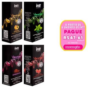 O Vibration Gel Aromático da Intt é um excitante unissex que proporciona sensações únicas de vibração, pulsação e aquecimento , tudo isso com aromas irresistíveis: chocolate, morango, menta e pêssego. Uma explosão sensorial que transforma qualquer momento íntimo em uma experiência ousada e marcante.